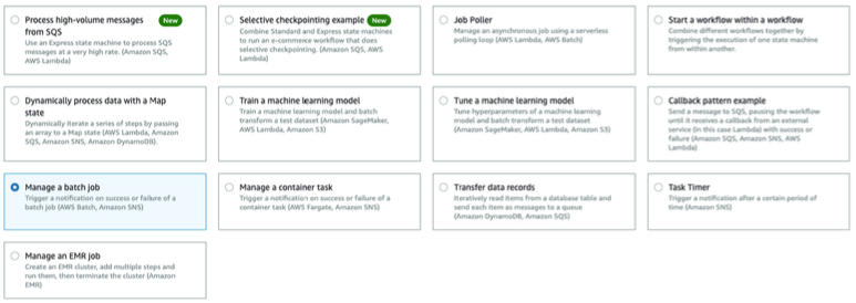 - 수많은 샘플 프로젝트를 참고해서 원하는 Step Function을 구축할 수 있다.