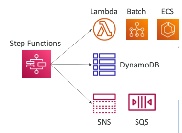 - "Step Function State Machine"은 SQS 큐, 람다 함수, DynamoDB와 같이 많은 AWS 서비스와 통합될 수 있다.