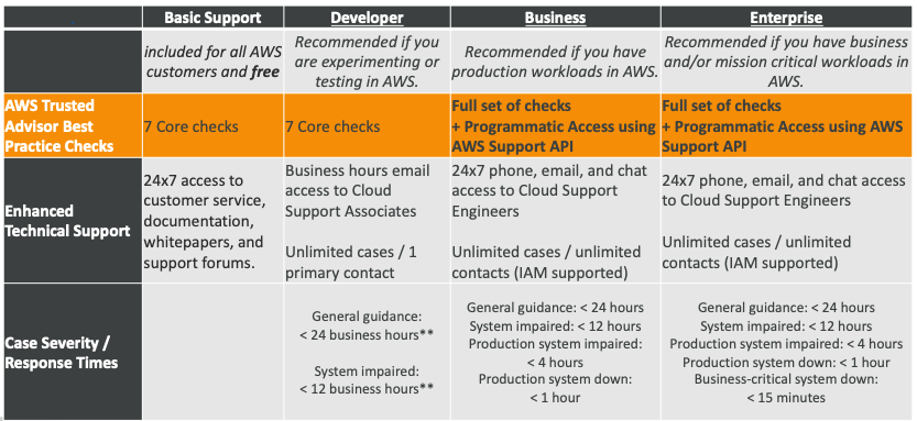 - Business, Enterprise 플랜은 프로그래밍 방식의 AWS 지원 API를 제공한다.