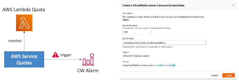 - Service Quotas 콘솔에서 CloudWatch 알람을 생성할 수 있다.
