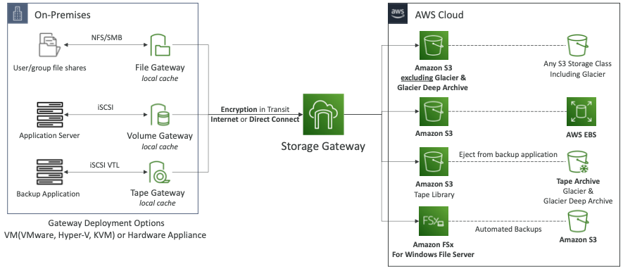 - 파일 게이트웨이, 볼륨 게이트웨이, 테이프 게이트웨이와 함께 작동한다.