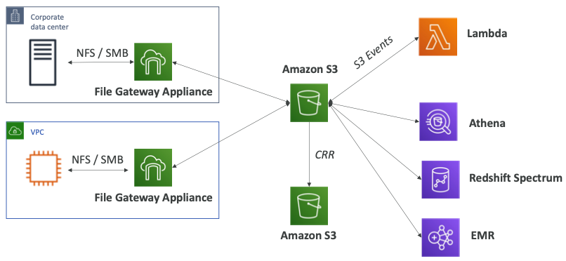- VPC를 사용해 다른 게이트웨이 어플라이언스를 생성하고 EC2 인스턴스를 NFS와 SMB에 연결할 수 있다.