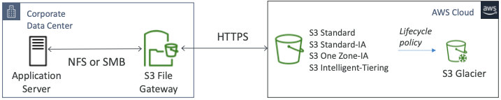 - 애플리케이션 서버가 파일 게이트웨이의 파일 시스템과 통신하고 그 파일들은 S3로 백업된다.