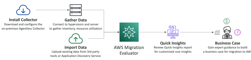 - 데이터 소스는 Migration Evaluator 서비스를 실행하게 하여 빠른 통찰력을 제공하고 비용에 대한 통찰력을 제공한다.