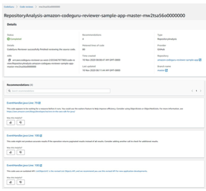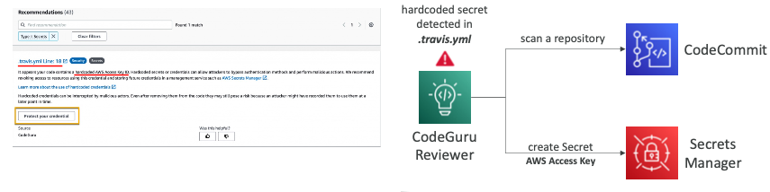 - CodeGuru가 CodeCommit 리포지토리를 스캔한다.