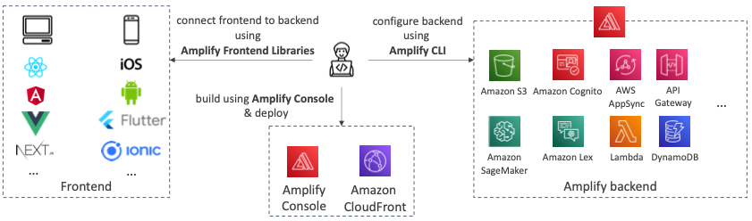 - 사용자는 Amplify CLI를 사용해 Amplify 백엔드를 생성한다.