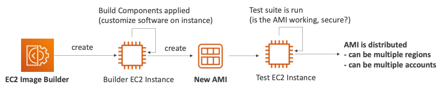 - 인스턴스는 아무것도 없는 상태로 생성되는데 이후 Image Builder 서비스가 앞에서 설정한 빌드 명령을 바탕으로 빌드 컴포넌트라는 것을 실행해 인스턴스의 소프트웨어를 구성한다.