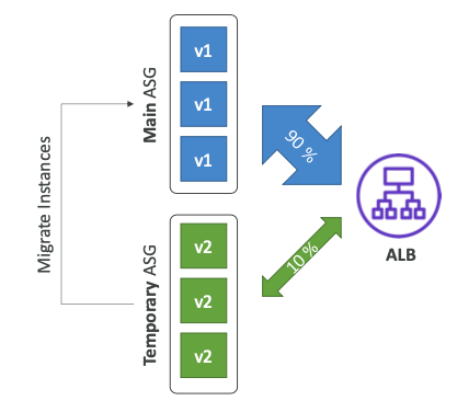 별칭으로 트래픽 시프트를 수행한다.