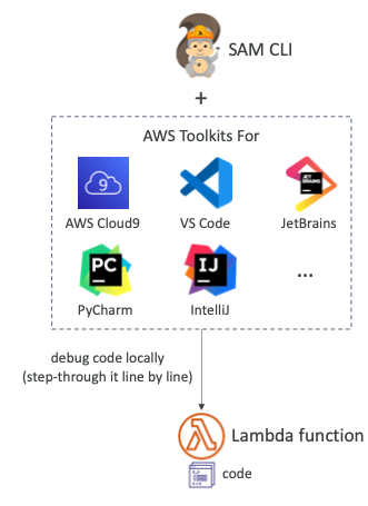 SAM CLI + AWS Toolkits를 통해서 코드 단계별 실행 및 디버깅을 할 수 있다.