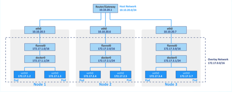 - Kubernetes는 파드 단위로 배포가 되며 하나의 파드는 Overlay Network을 가진다.