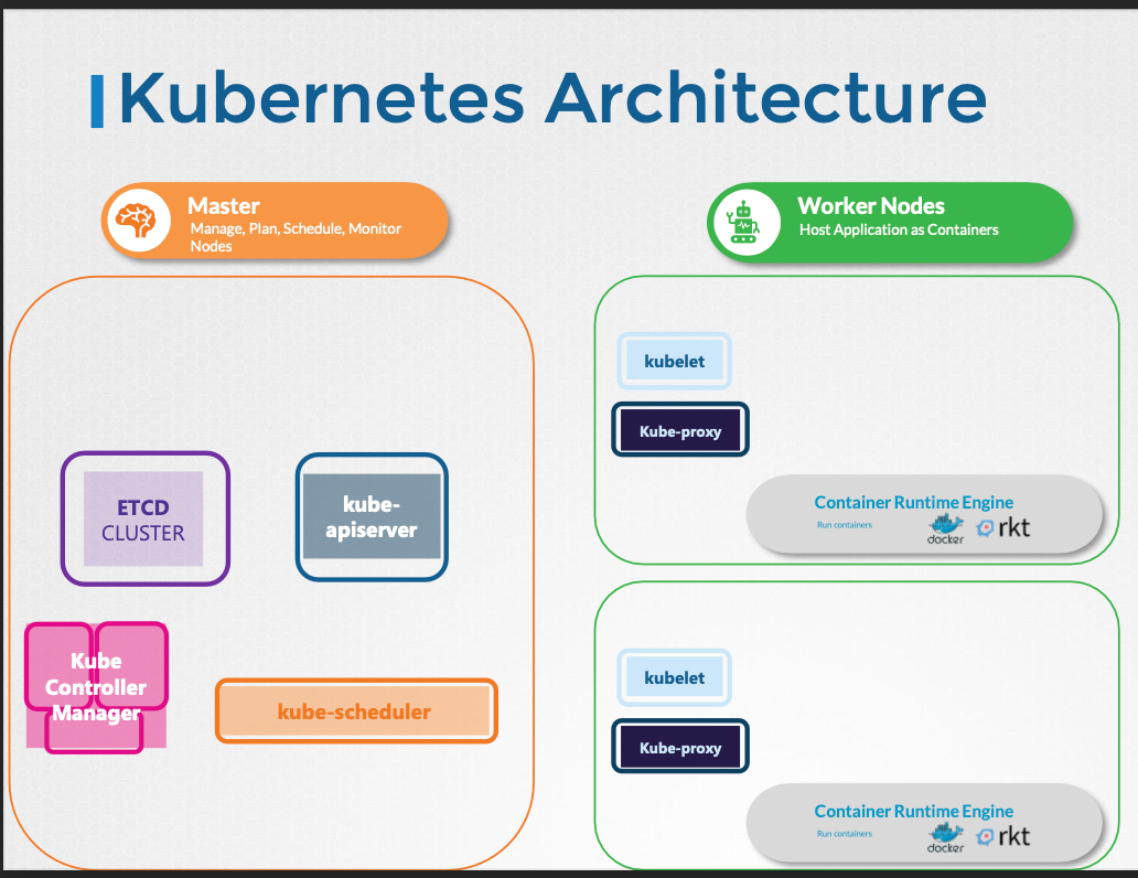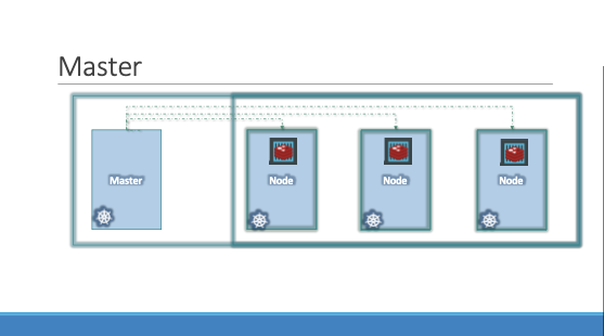 - 마스터는 쿠버네티스가 설치된 또 다른 노드이며 마스터로 구성된다.