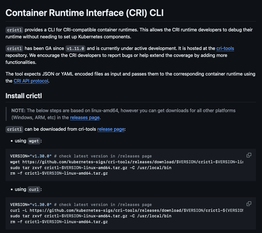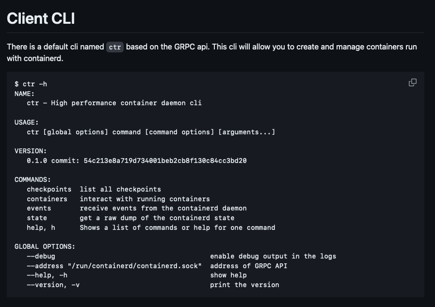 - 이 도구는 ContainerD 디버깅만을 위해 만들어졌고 제한된 기능만을 지원하기 때문에 사용자 친화적이지 않다.