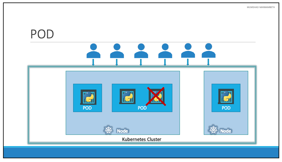 - 사용자가 더 늘어나고 현재 도느에 충분한 용량이 없다면, 언제든지 새로운 노드를 추가하여 새로운 "파드"를 생성할 수 있다.