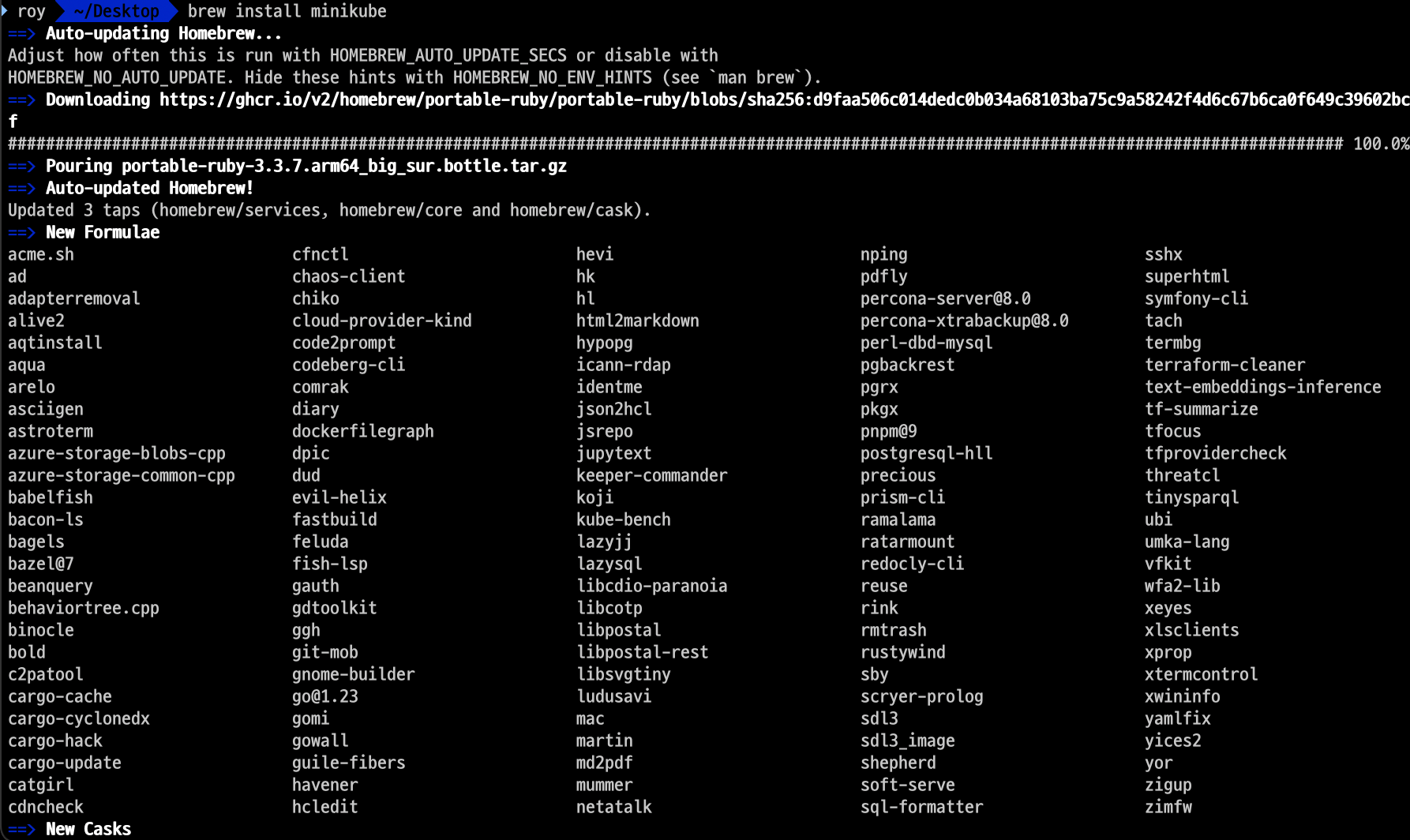 brew install minikube 명령을 입력하여 "Minikube"를 설치한다.
