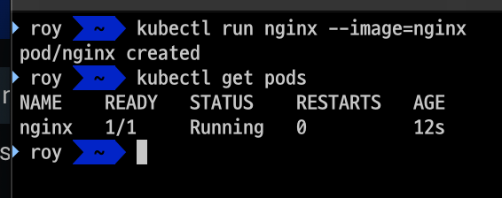 kubectl run nginx --image=nginx 명령어를 입력하여 Nginx Pods를 실행시킨다.