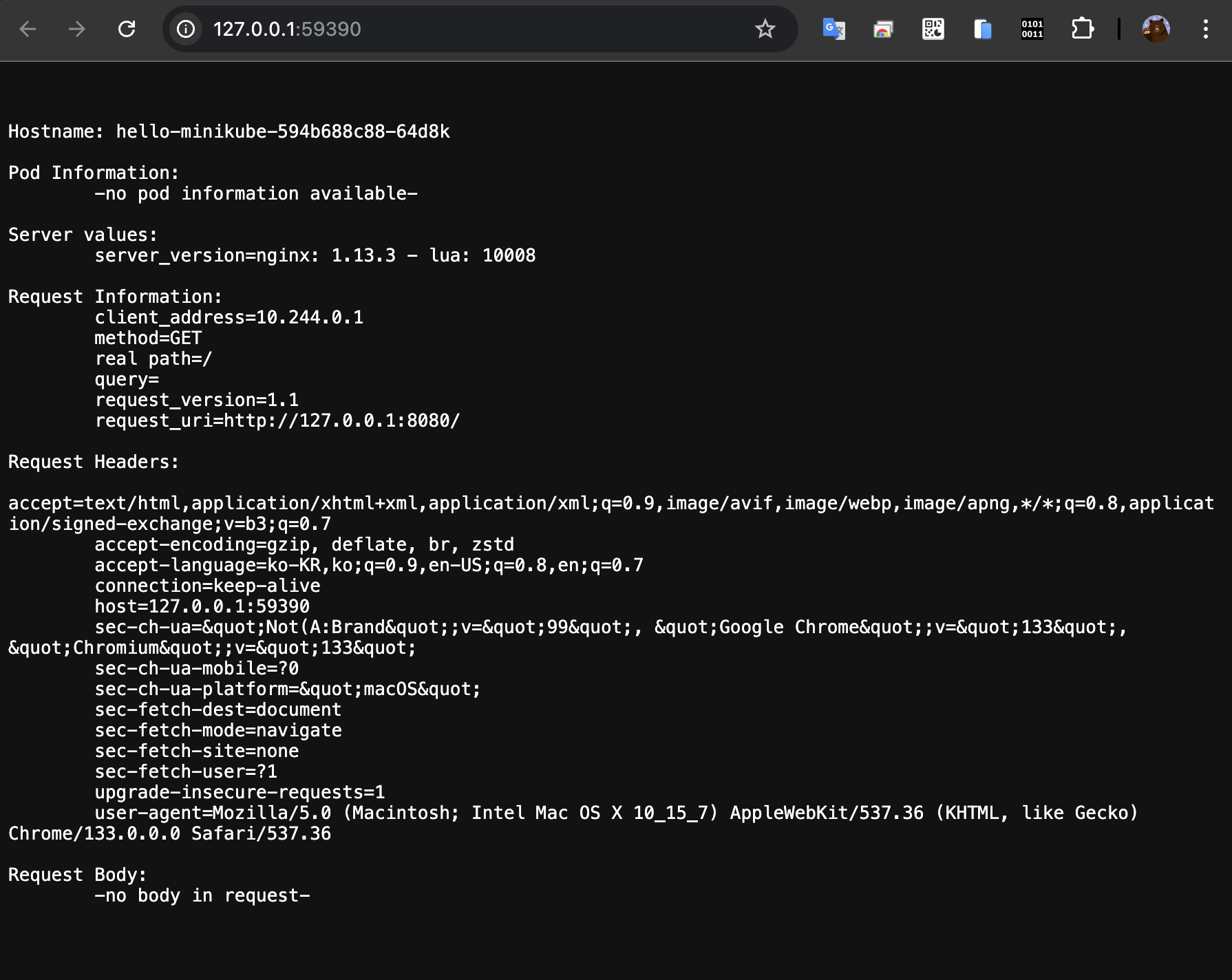 nginx 1/1 Running 0 5m19s 10.244.0.3 minikube <none> <none>