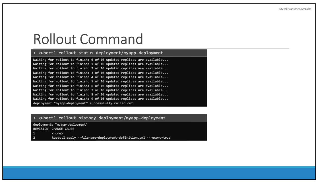 새로운 Deployment를 만들거나 기존 Deployment에서 이미지를 업데이트할 때마다 롤아웃이 트리거된다.