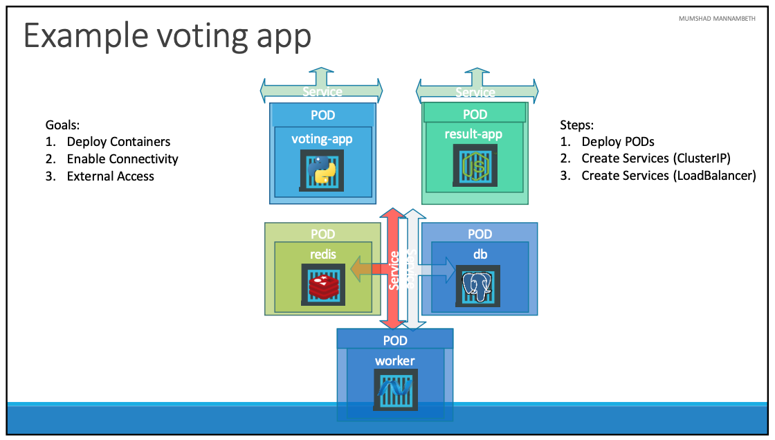 - Postgres가 실행되고 있는 파드는 Worker 앱과 결과 앱이 접근할 수 있어야 한다.