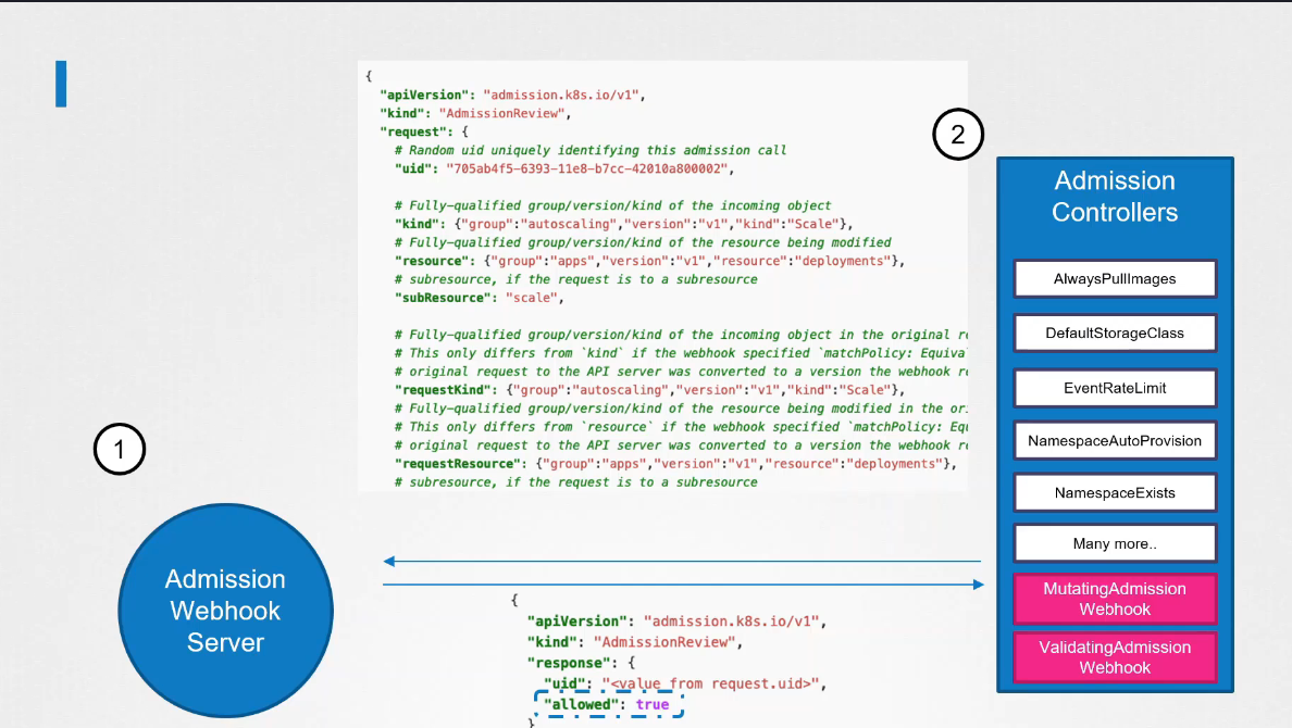 - 어드미션 Webhook 서버는 AdmissionReview 객체를 응답으로 반환하며, 이 객체에는 요청 허용 여부가 포함된다.