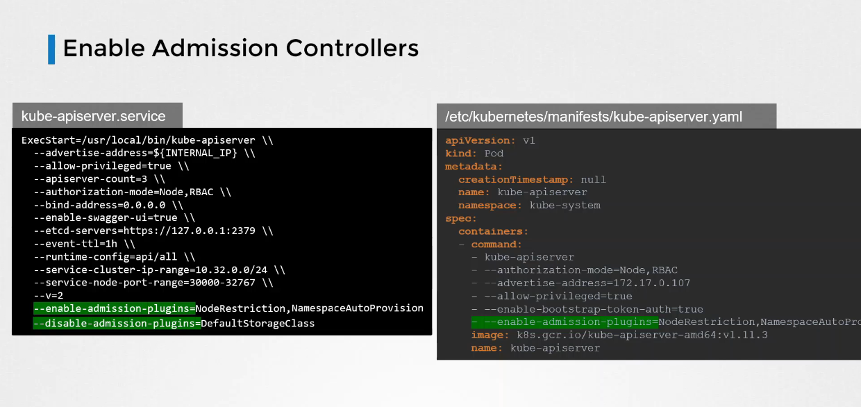 --enable-admission-plugins 플래그를 수정하여 Admission Controller를 활성화할 수 있다.