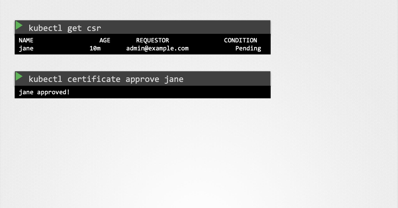 CertificateSigningRequest객체는kubectl get csr명령어를 통해 클러스터 관리자가 확인할 수 있다. - 관리자는