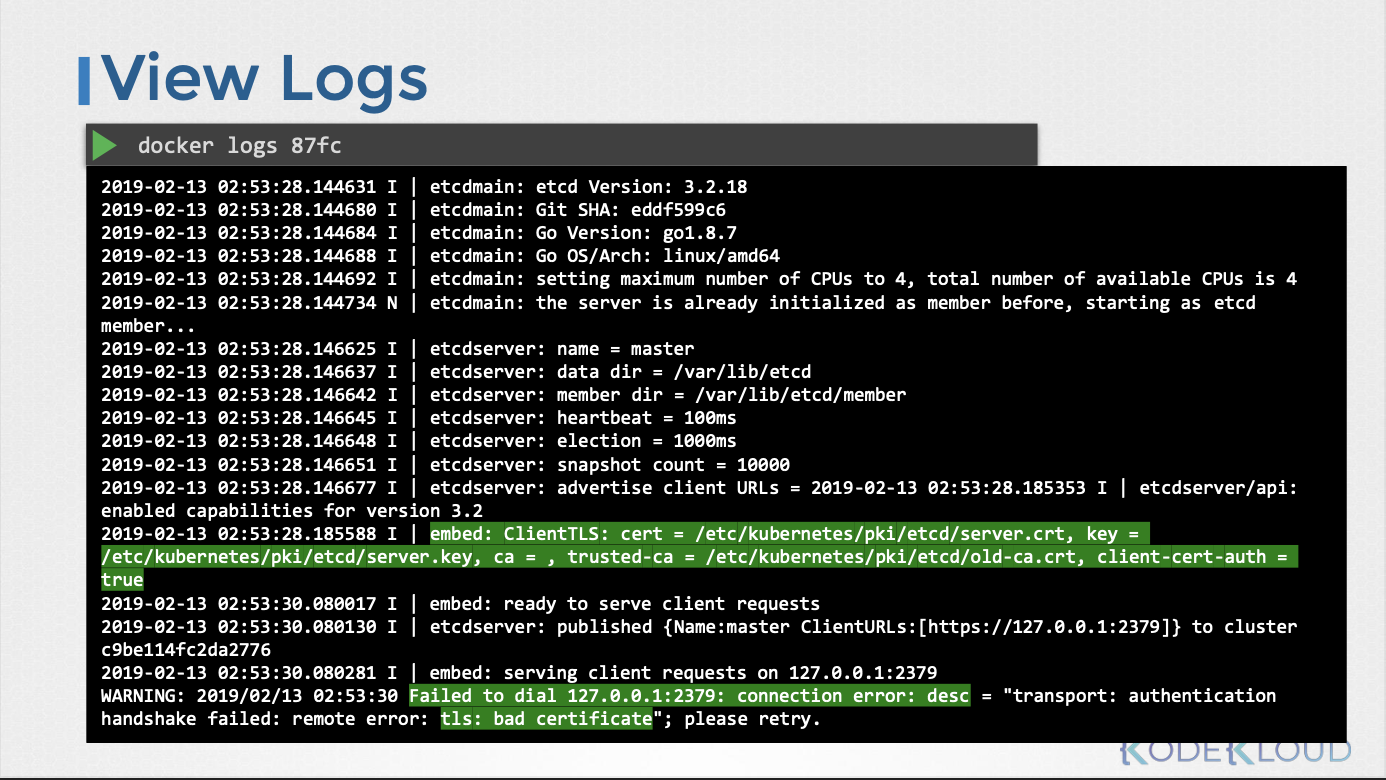 - etcd 서버 구성: etcd 서버 시작 시 인증서 경로를 지정한다.