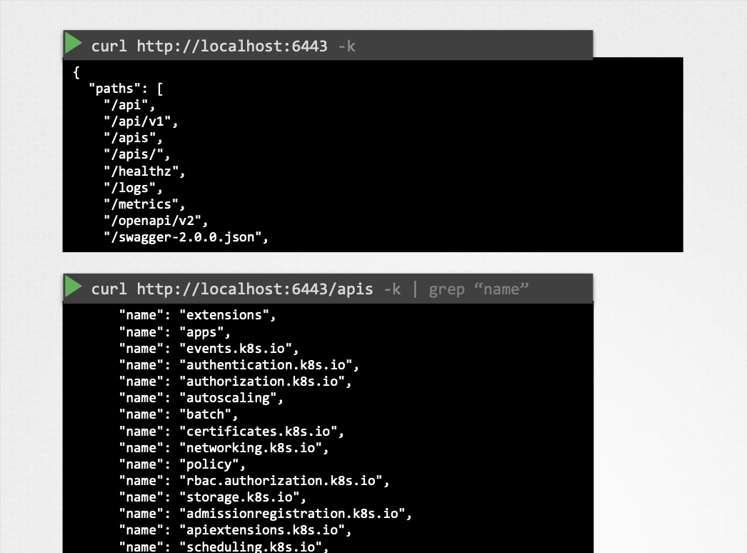 - API 서버 주소와 포트(기본: 6443)를 사용하여 직접 API에 접근할 수 있다.
