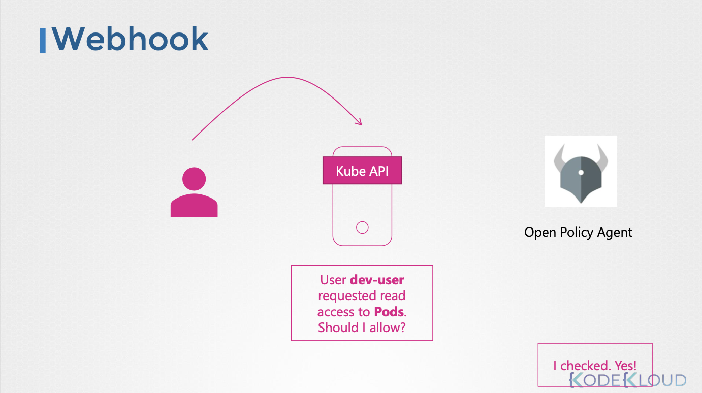 - 외부 시스템은 권한 부여 결정을 쿠버네티스에 반환한다.