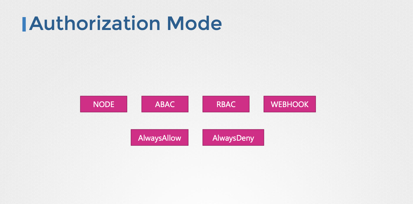 --authorization-mode옵션을 사용하여 권한 부여 모드를 설정한다. - 쉼표로 구분된 여러 모드를 지정할 수 있다.(예:
