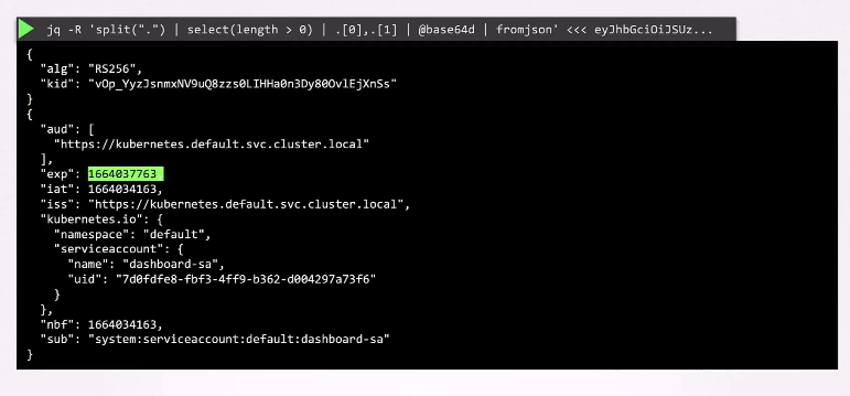 - 이 명령어로 생성된 토큰은 만료일이 설정된다. (기본적으로 1시간)