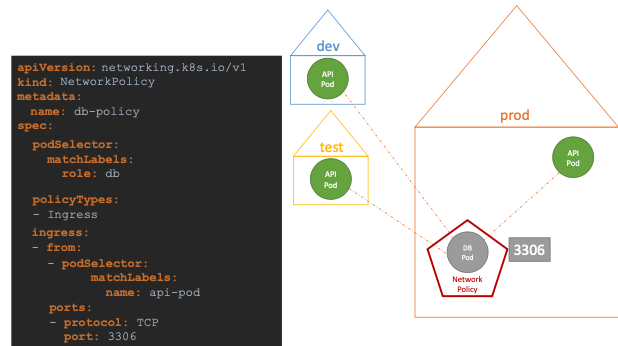 ingress:- from:- podSelector:matchLabels:<label-key>: <label-value>