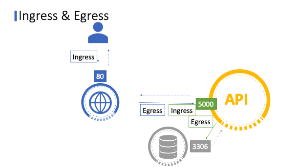 - DB 파드의 관점에서 API 파드로부터의 트래픽은 Ingress다.