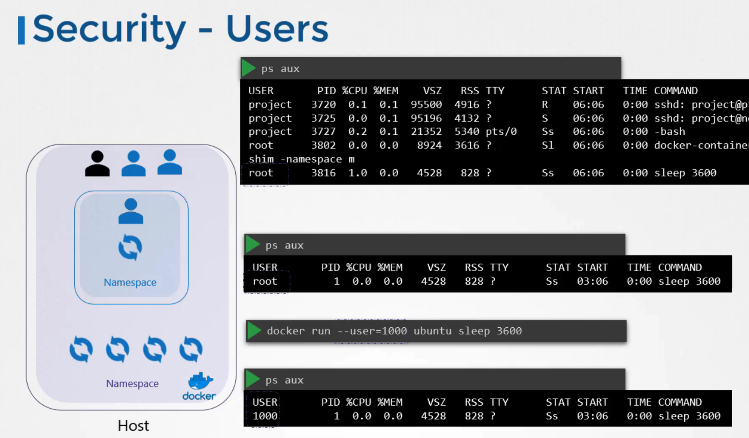 - 컨테이너 내부의 루트 사용자는 호스트의 루트 사용자와 동일하지 않다.
