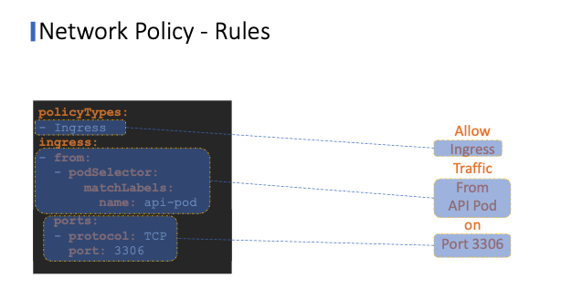 - DB 파드에서 API 파드로의 트래픽은 Egress이며 별도의 Egress 규칙이 필요하다.