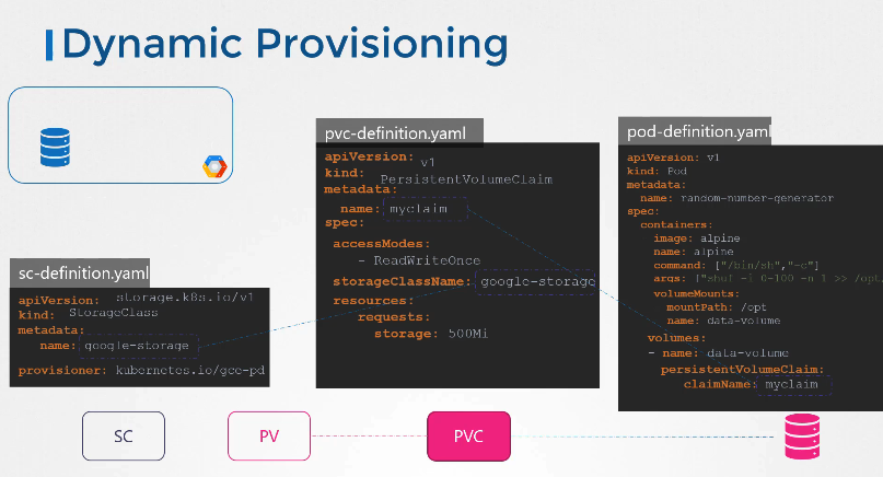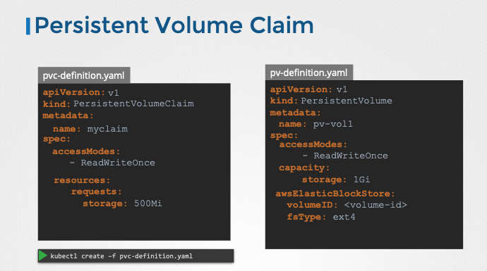 사용자는 영구 볼륨 클레임(Persistent Volume Claims, VPC)을 통해 필요한 스토리지를 할당받는다.
