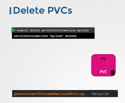삭제 명령어: kubectl delete persistentvolumeclaim 명령어를 사용하여 클레임을 삭제한다.