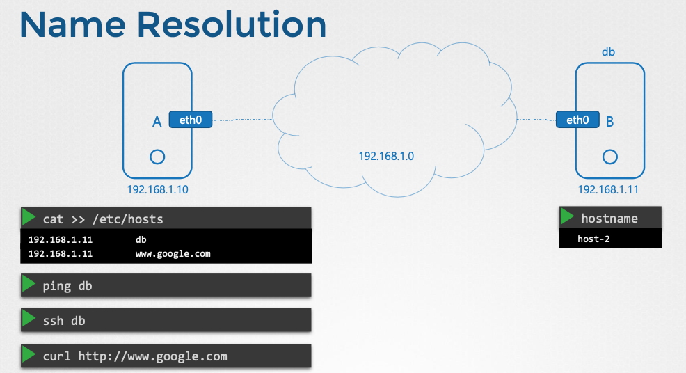 - 시스템은 호스트 이름 해석을 위해 먼저 이 파일을 참조한다.