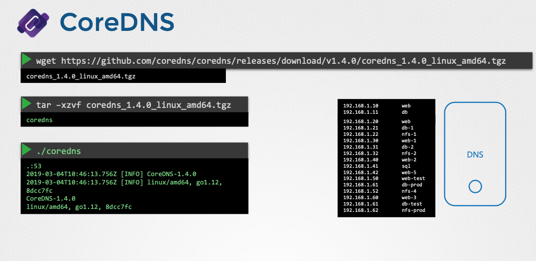 - CoreDNS 바이너리는 GitHub 릴리즈 페이지에서 다운로드하거나 도커 이미지로 사용할 수 있다.