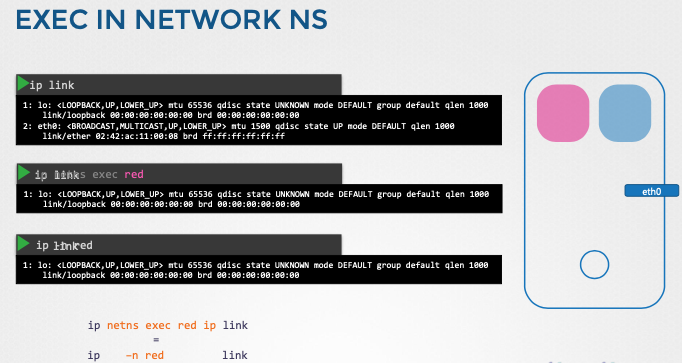 ip link set veth-red netns red,ip link set veth-blue netns blue