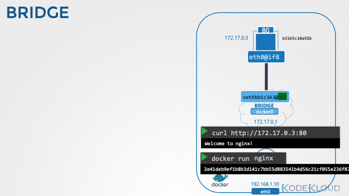- veth 인터페이스의 한쪽 끝은 컨테이너의 네트워크 네임스페이스에 연결되고, 다른 쪽 끝은 Docker0 브리지에 연결된다.