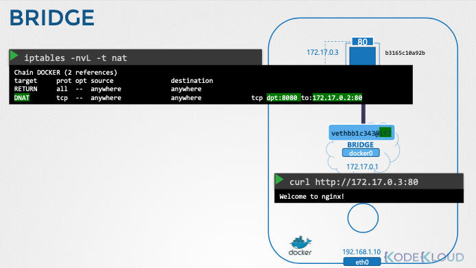 - iptables: 네트워크 트래픽을 제어하고 포트 매핑을 구현하는 데 사용된다.