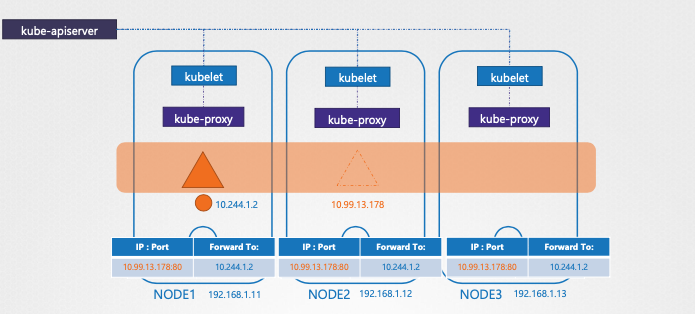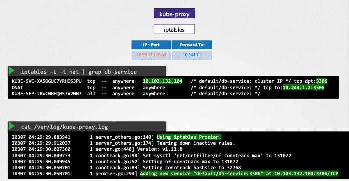 - kube-proxy는 각 노드에서 서비스 IP 주소를 가져와 포워딩 규칙을 생성한다.