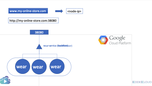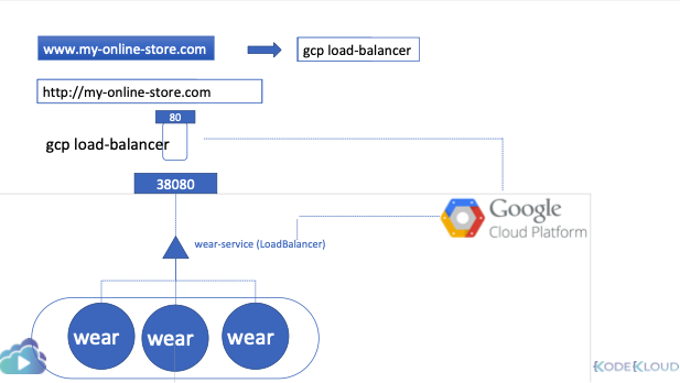 - 클라우드 로드 밸런서 프로비저닝: 쿠버네티스는 GCP에 네트워크 로드 밸런서 프로비저닝 요청을 보내고 GCP는 트래픽을 서비스 포트로 라우팅하는 로드 밸런서에 자동으로 배포한다.