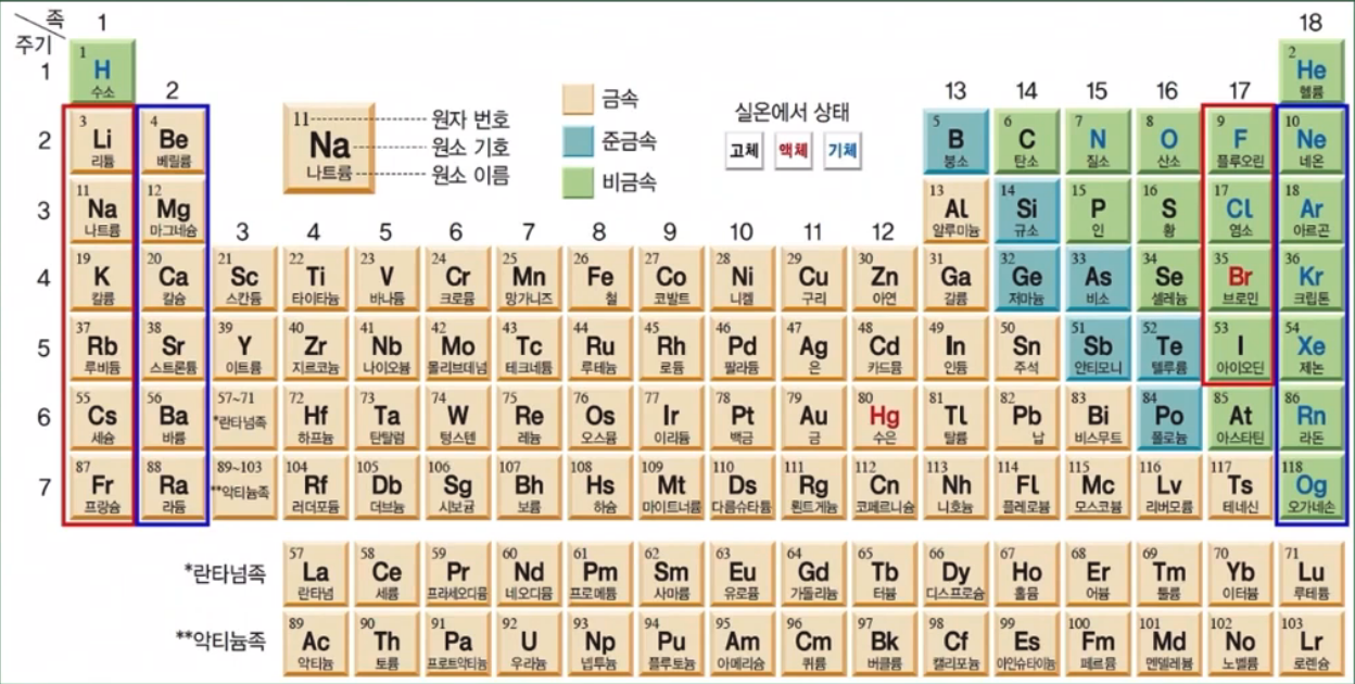 - ์ฃผ๊ธฐ์จํ๋ ์์ ๋ฒํธ ์์ผ๋ก ๋์ด๋์์ ๋ฟ๋ง ์๋๋ผ, ํน์ ์ฑ์ง์ด ๋ฐ๋ณต๋๋๋ก ์ฃผ๊ธฐ(๊ฐ๋ก์ค)์ ์กฑ(์ธ๋ก์ค)์ ๋ฐ๋ผ ๋ฐฐ์ดํ ํ์ด๋ค.