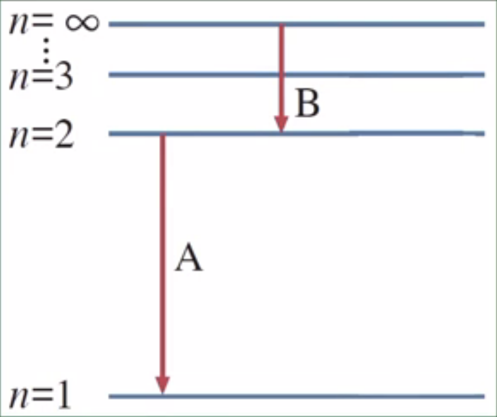 - [ E(n=2) - E(n=1) ] >> [ E(n=3) - E(n=2) ] > [ E(n=4) - E(n=3) ] ...