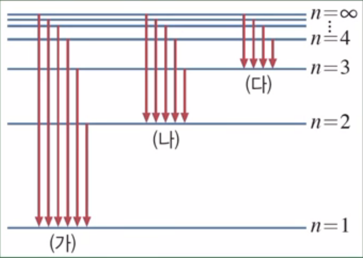 - ์ ์๊ฐ ๋ช ๋ฒ์งธ ๊ป์ง๋ก ๋จ์ด์ง๋๋(๋ฐฉ์ถ) ๋๋ ๋ช ๋ฒ์งธ ๊ป์ง์์ ์ถ๋ฐํ๋๋(ํก์)์ ๋ฐ๋ผ ๋ฐฉ์ถ/ํก์๋๋ ๋น ์๋์ง์ ์ข ๋ฅ๊ฐ ๋ฌ๋ผ์ง๋ค.