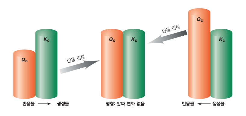- $Q < K$ (๋ถ๋ชจ๊ฐ ํผ): ์์ฑ๋ฌผ์ด ๋ถ์กฑํ๋ค. $\rightarrow$ ์ ๋ฐ์ ์งํ (์ค๋ฅธ์ชฝ์ผ๋ก ์ด๋)